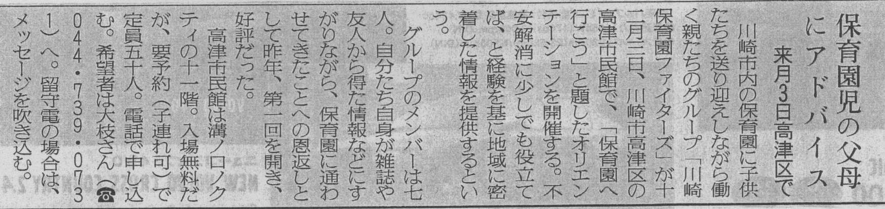 保育園児の父母にアドバイス 〜読売新聞川崎版(2000.11.30)
